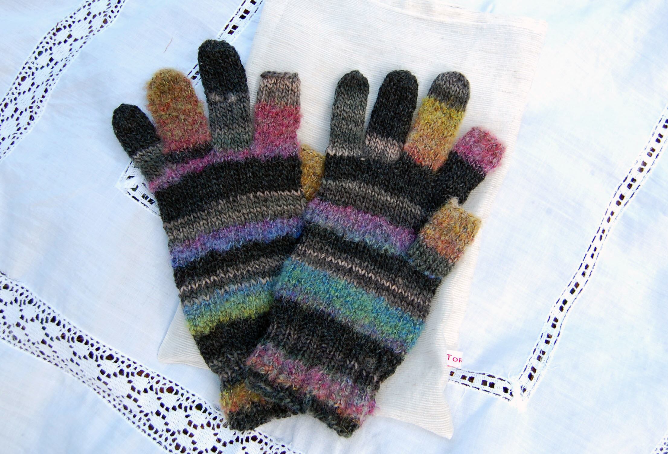 いろんな素材、カラーでできた楽しい糸で編みました。
