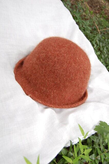 Handmade 100% Wool Felt Bowler Hat <Brick color>