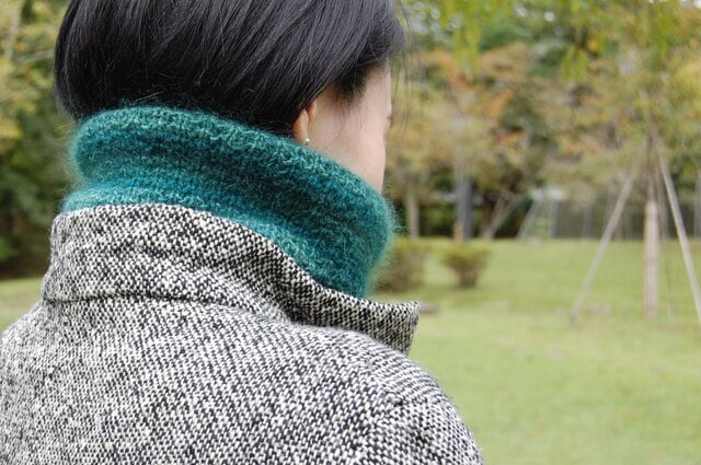 ニットネックウォーマー 碧 アルパカ手編み