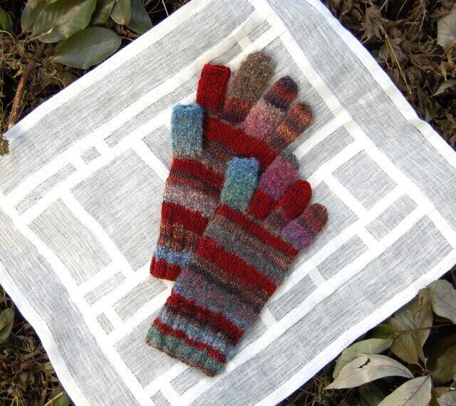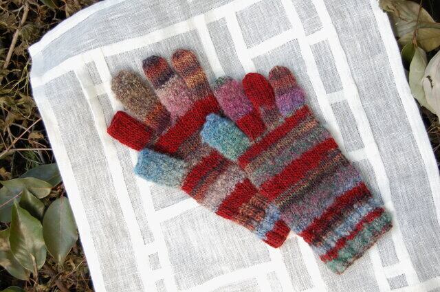 いろんな素材、カラーでできた楽しい糸で編みました。